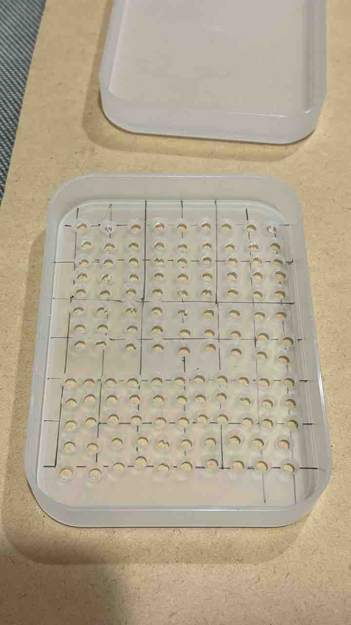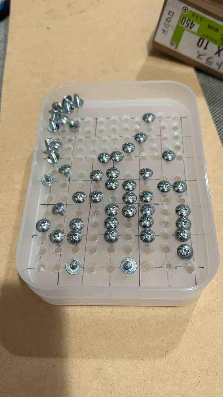 ①ビスの入った箱からビスを一つ取り出し、